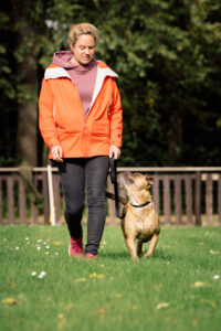 Wir lernen hier Dinge wie: An lockerer Leine gehen, Aufmerksamkeit, Lob-Wort, Frustrations- und Impulskontrolle, eben alles was es braucht um ein tolles Team zu werden.